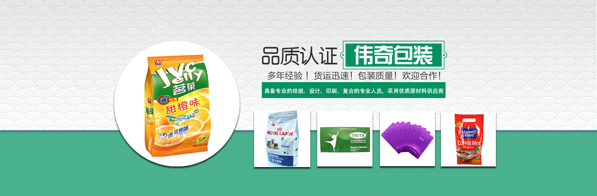 本公司是一家從事卷膜,復合包裝袋,食品包裝袋、真空包裝袋、鋁箔包裝袋以及服裝包裝袋加工,印刷的廠家,本公司分別在上海、溫州兩處成立工廠,具備專業的排版